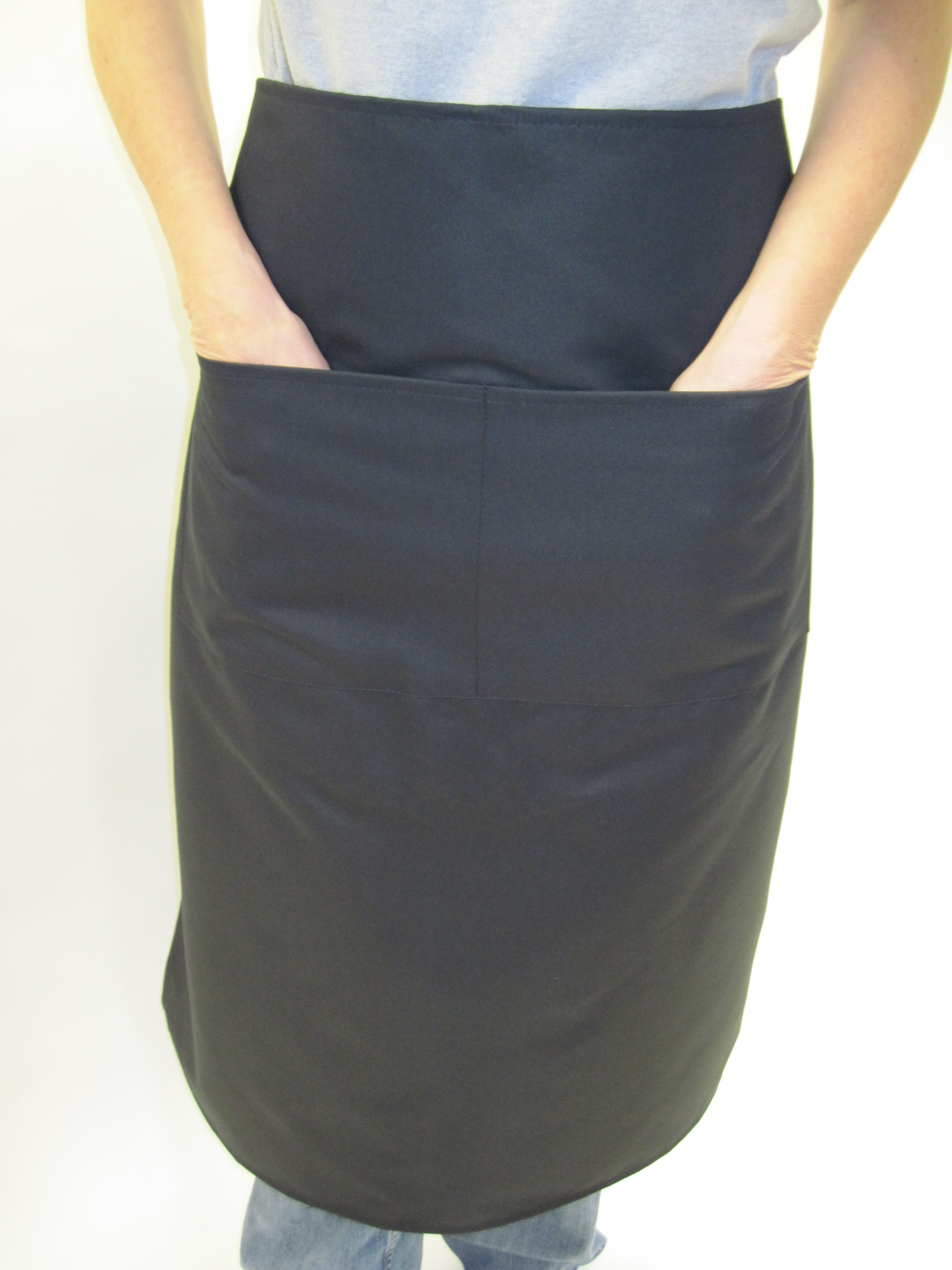 #POLY-068G Black poly money apron with 3 pockets, fabric ties